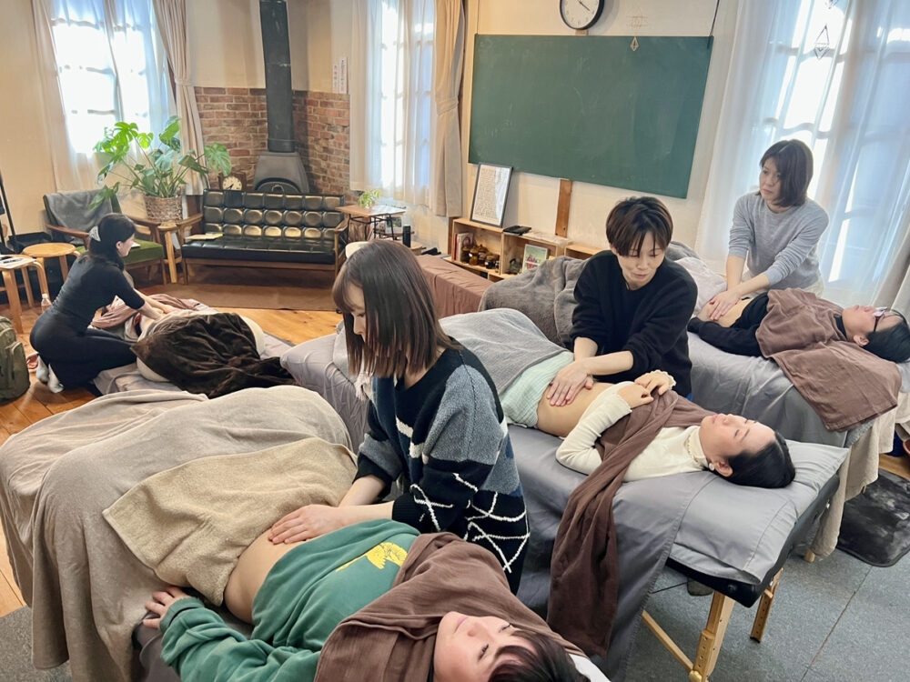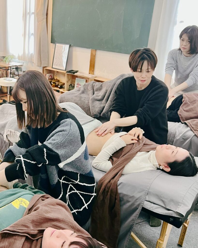 腸セラピースクールでは、お腹にやさしく触れることで、体と心の両方に働きかける「腸セラピー」の技術を基礎から学べるカリキュラムをご用意しています。