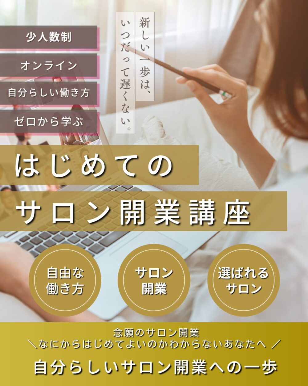 すでにサロンを運営している方はもちろん、これから開業を目指す方もご参加いただけます。「まだ何も準備していない…」という段階でも大丈夫です。