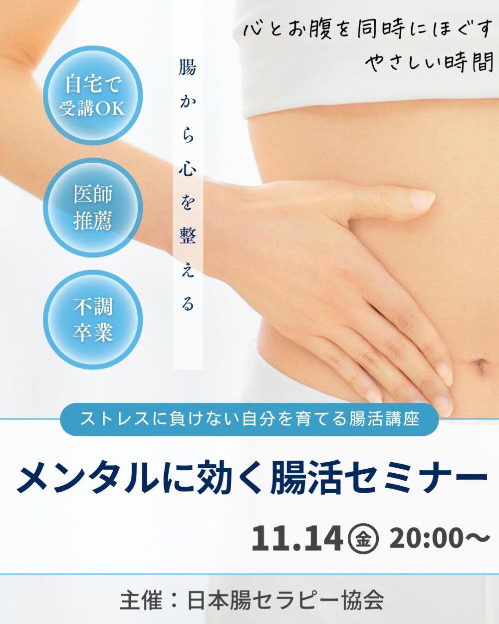 このセミナーでは、そんな腸と心をやさしく整える方法をお伝えしてまいります。