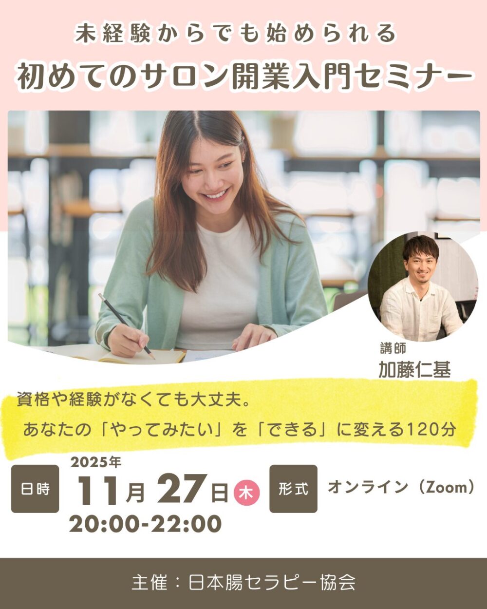 このセミナーは、未経験からサロンをスタートしたい方のための入門講座です。